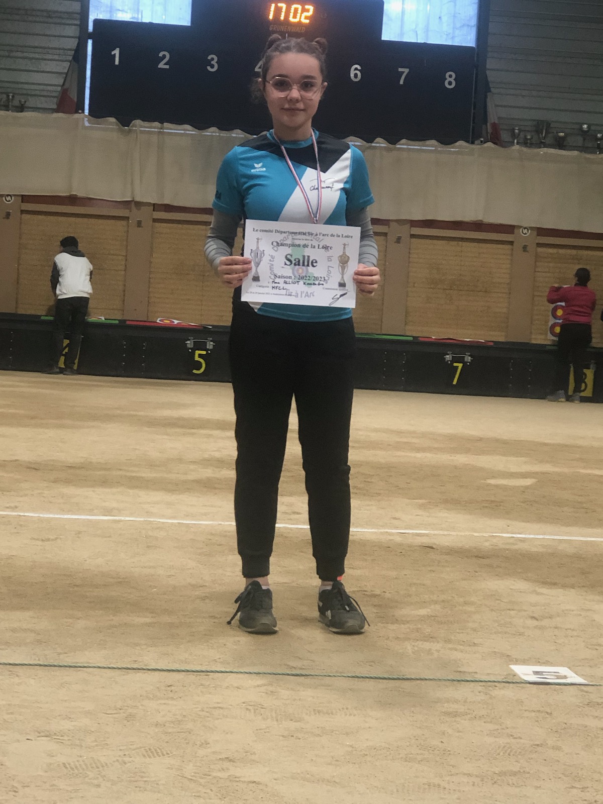 - Kassandra termine 3ème du classement U15 Femme Arc Classique.