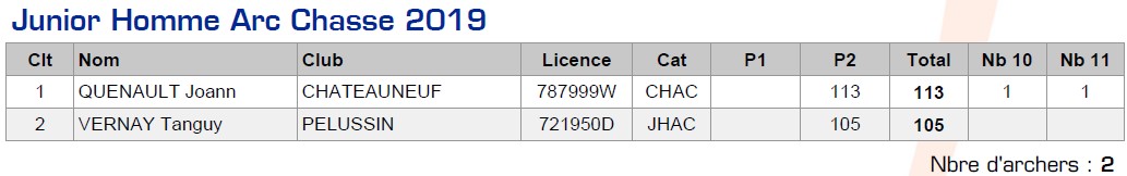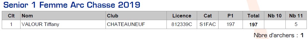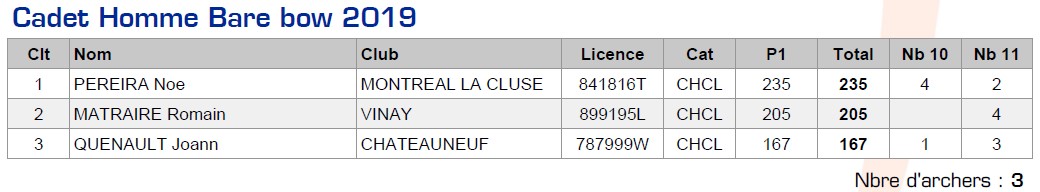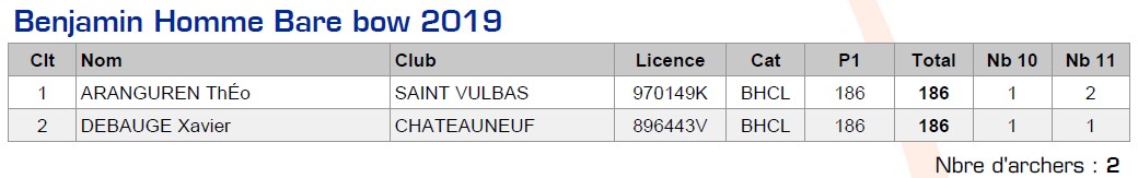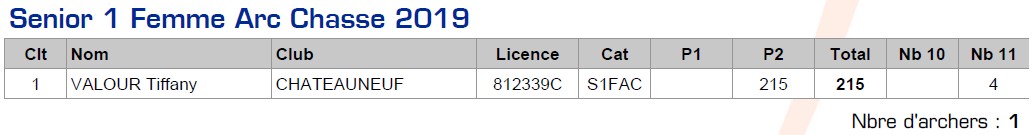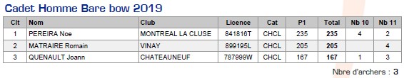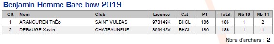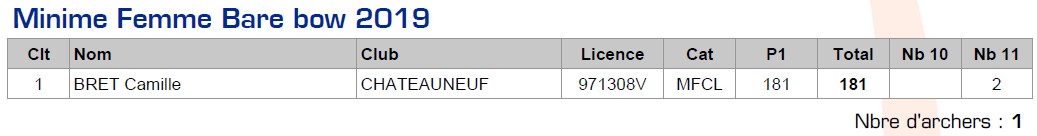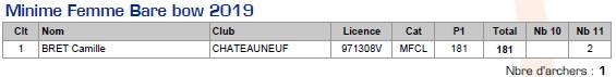 Voici les résultats classés avec le nombre d’archers par catégorie :