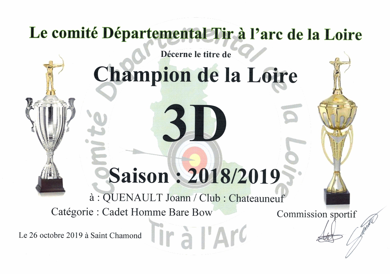 3 archer(e)s du Diane Club se sont vu décerner le titre de champion de la Loire :