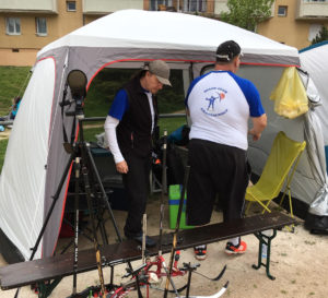 8h00 (ou peut-être avant) – On installe le barnum et on le sécurise de tous cotés, la journée s’annonce très venteuse… (on a bien fait, à peine terminé c’est le barnum des organisateurs qui se transforme en cerf-volant et nous fait un salto arrière…)