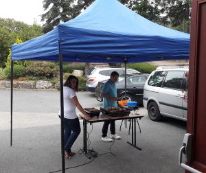 La météo ayant décidée de jouer contre nous, un barnum fût déployé au dessus des barbecues.