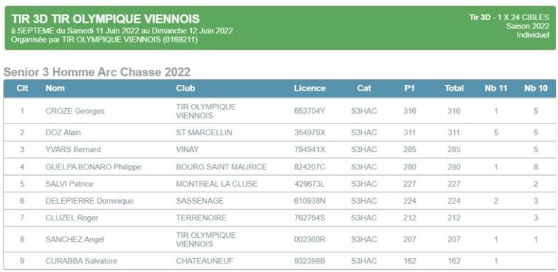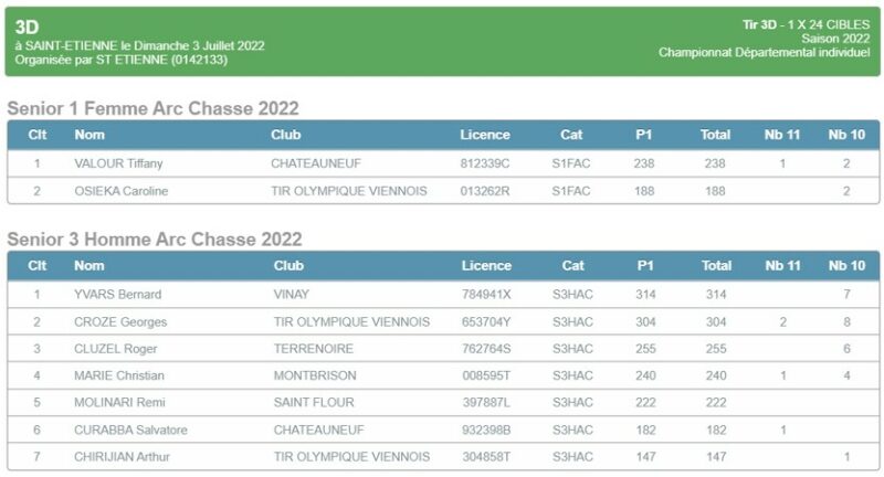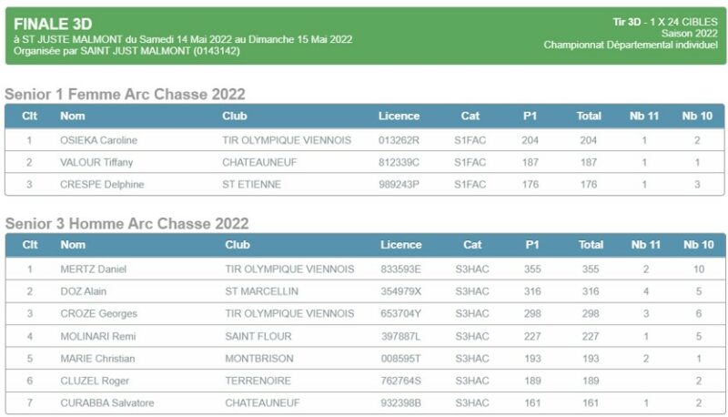 Voici un petit bilan des résultats des archers qui ont participé à des compétitions durant cette saison.